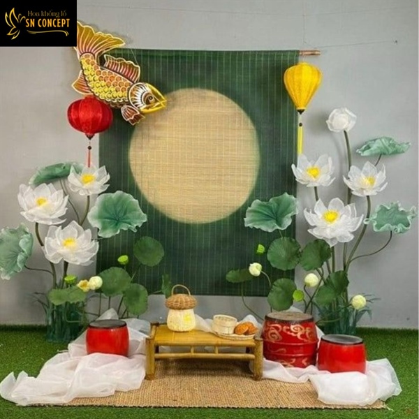 Backdrop hoa sen khổng lồ trang trí trung thu, trang trí sự kiện