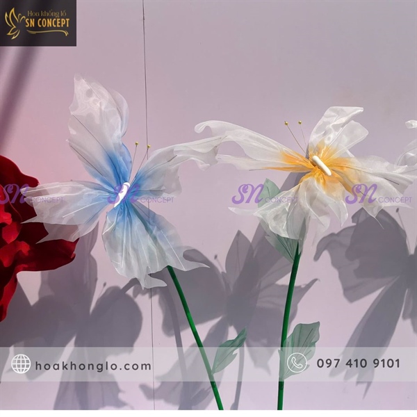 Bướm voan khổng lồ kích thước 60cm màu trắng pastel trang trí sự kiện, studio chụp ảnh