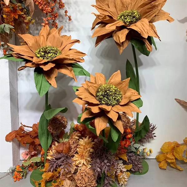 Hoa Hướng Dương Khổng Lồ Giấy Nhún Màu Nâu, Be Vintage