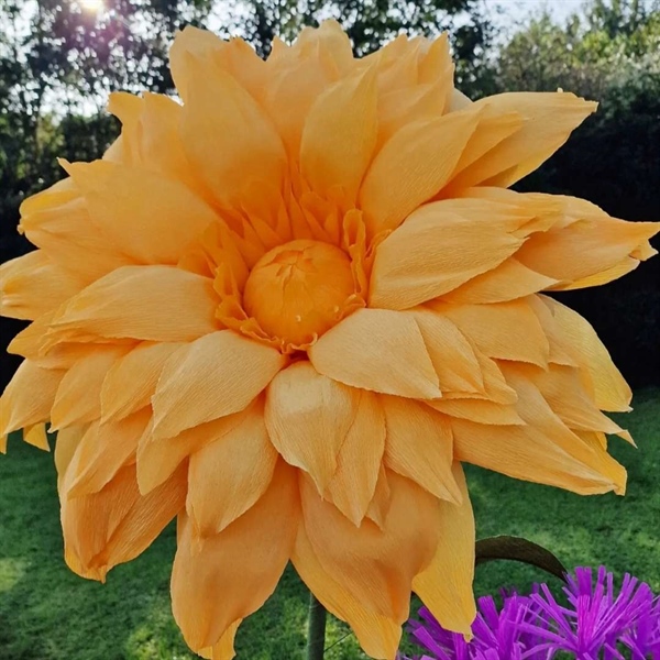 Hoa Thược Dược Giấy Nhún Khổng Lồ Màu Cam Trang Trí Tiểu Cảnh Vườn Hoa