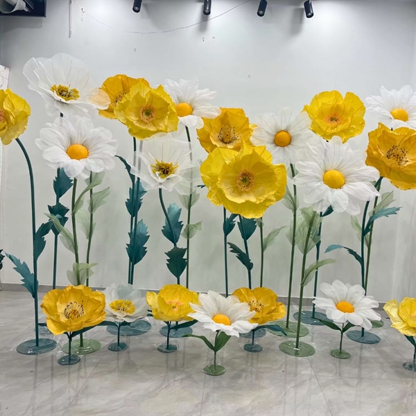 Set Hoa Khổng Lồ Màu Vàng & Trắng Trang Trí Trung Tâm Thương Mại