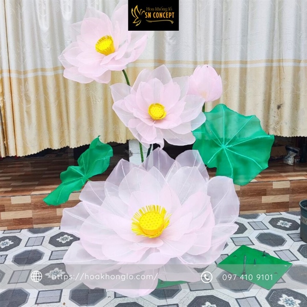 Hoa Sen Khổng Lồ Vải Voan Màu Hồng, Trắng