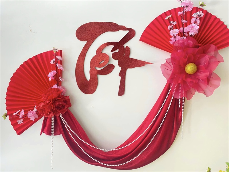 Set trang trí Tết kết hợp giữa quạt và hoa voan